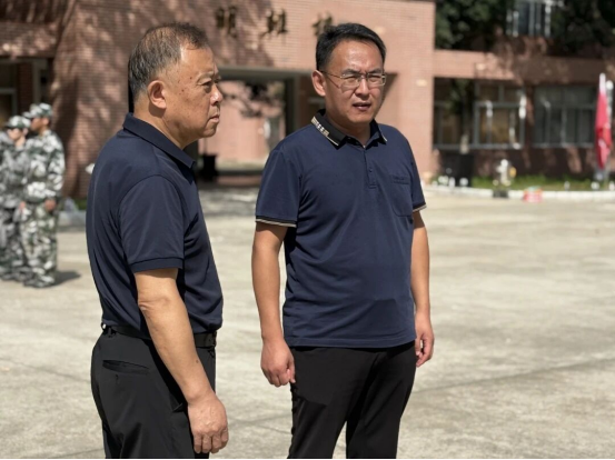 9月22日,现代服务学院院长王振翼、党总支书记张强等一行来到军训场地,亲切慰问2025级参训新生及承训教官,为他们送上关怀与鼓励。王振翼院长向坚守一线、严格施训、认真组织的教官和指导员表示衷心的感谢,正是这样的辛苦付出,保障了军训工作的顺利开展,筑牢了军训工作的安全防线。