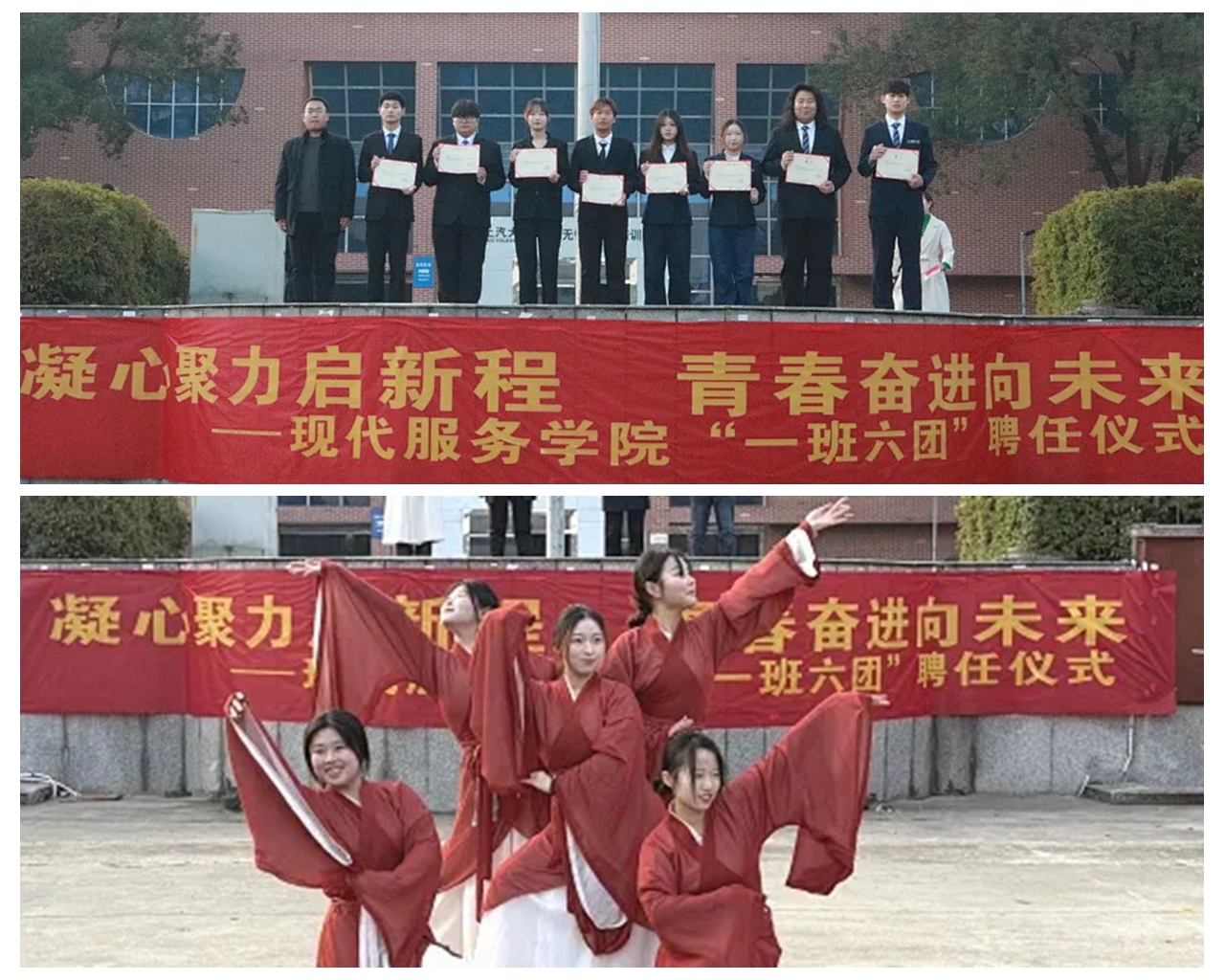 为凝聚青年力量,搭建成长平台,现代服务学院于12月29日上午7:40在军嶂广场隆重举行“凝心聚力启新程,青春奋进向未来——‘一班六团’聘任仪式”。学院领导、师生代表齐聚一堂,共同见证这一庄重而充满活力的时刻,活动由学院团总支书记潘莹主持。