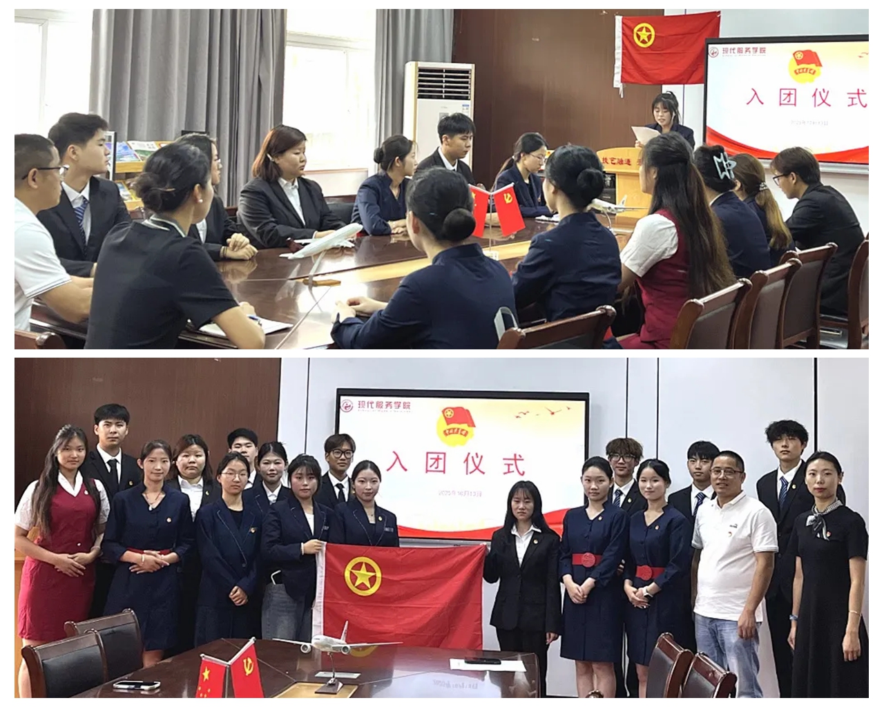 以青春之名,赴信仰之约,2025年10月13日中午,现代服务学院全体团员齐聚明辨楼会议室,共同见证新团员们加入共青团大家庭的光荣时刻。