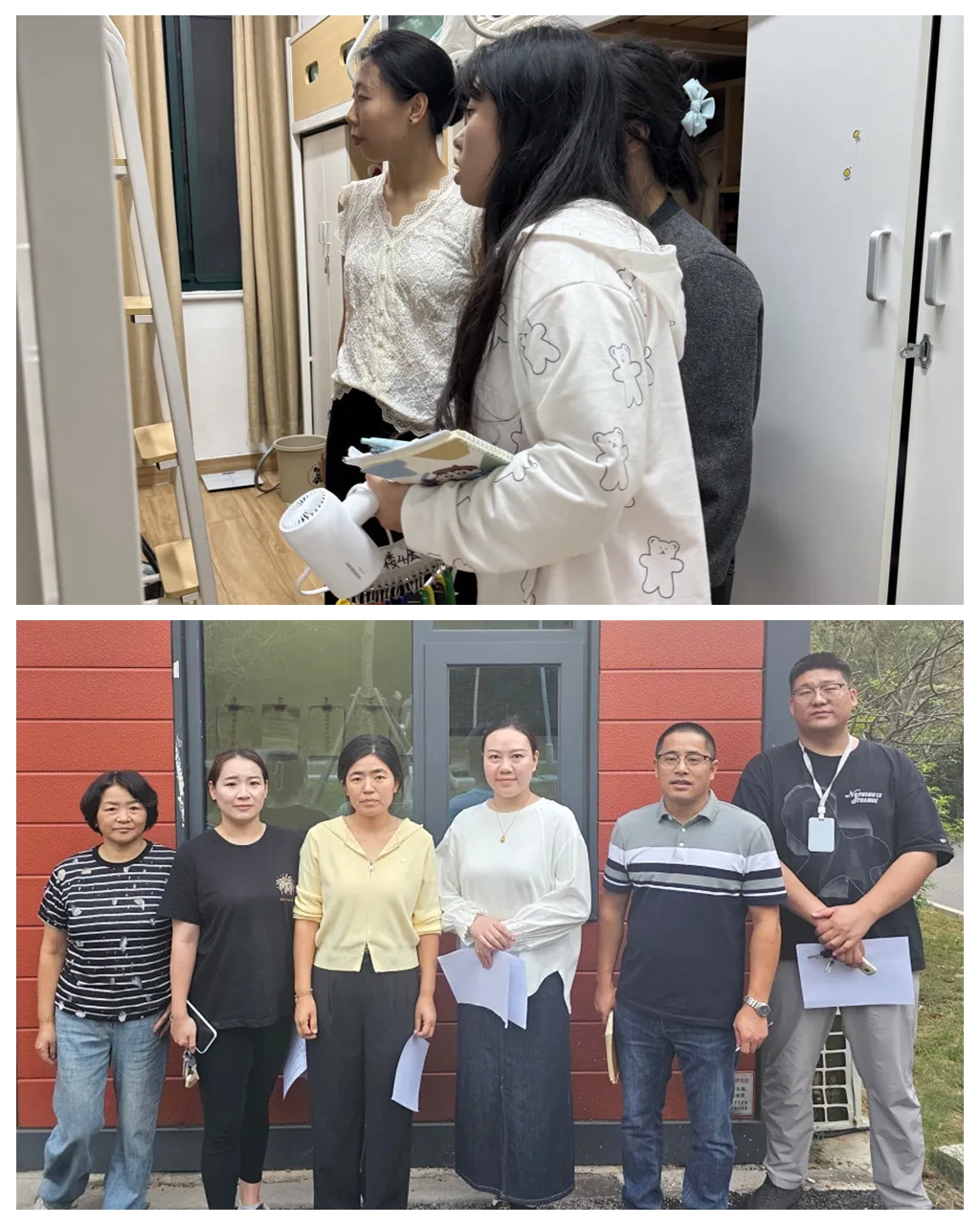 各检查小组成员并肩而立,是现代服务学院落实“一线三排”工作机制的生动缩影。辅导员牵头,宿管阿姨、副班、楼长层长配合、全员尽责,将安全防线织密织牢。