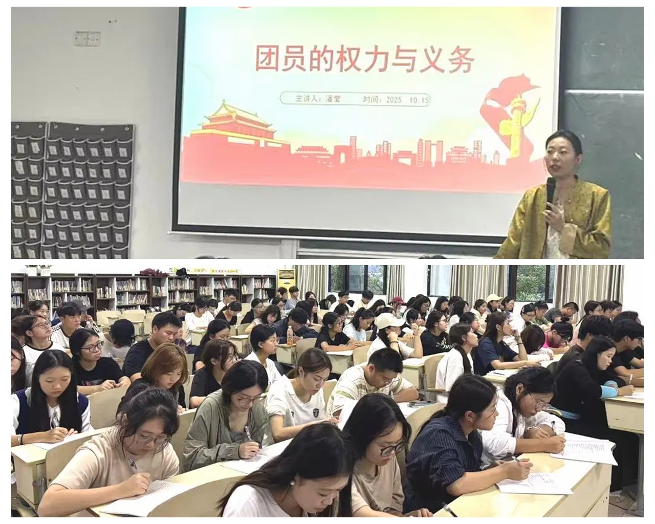 团课聚焦“团员的权利与义务”核心要义,潘莹老师以理论为基、案例为引,为入团积极分子带来深刻思想引领。思想铸魂、履职担当、严守纪律,潘老师号召同学们以团结奉献传递青春温度,以坚定信念锚定前进方向。