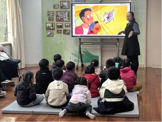 绘本阅读环节中,两位老师围绕“候鸟来的季节”主题,为孩子们讲述了生动有趣的候鸟绘本故事,带领大家走进自然、认识候鸟、感受季节之美。志愿者们安静陪伴在幼儿身边,认真聆听、细心守护,用温柔的陪伴营造出温馨舒适的阅读氛围。